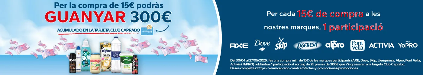Caprabo utilitza galetes pròpies i de tercers. Si accepteu expressament la nostra política de galetes o continueu navegant per diferents pàgines, accedint a diferents àrees i menús, mitjançant aquesta acció afirmativa, n’accepteu la instal·lació i l’ús. Per obtenir-ne més informació feu clic aquí.